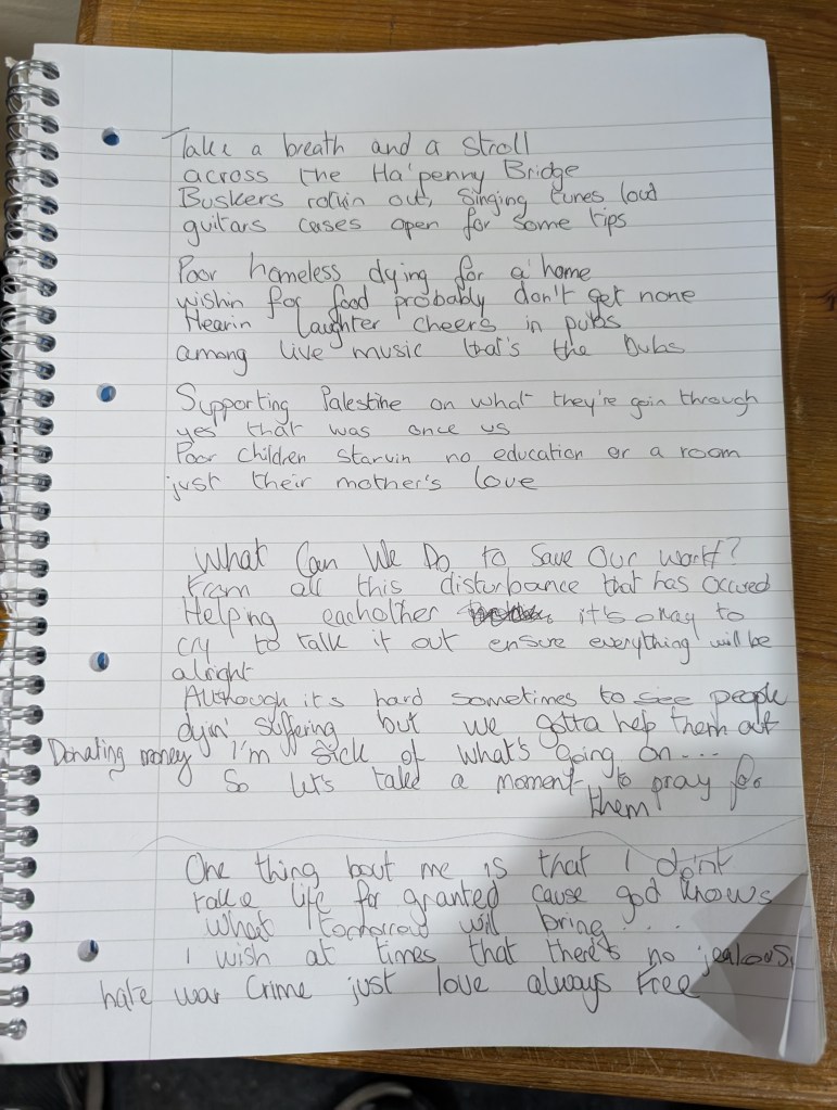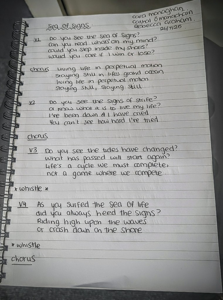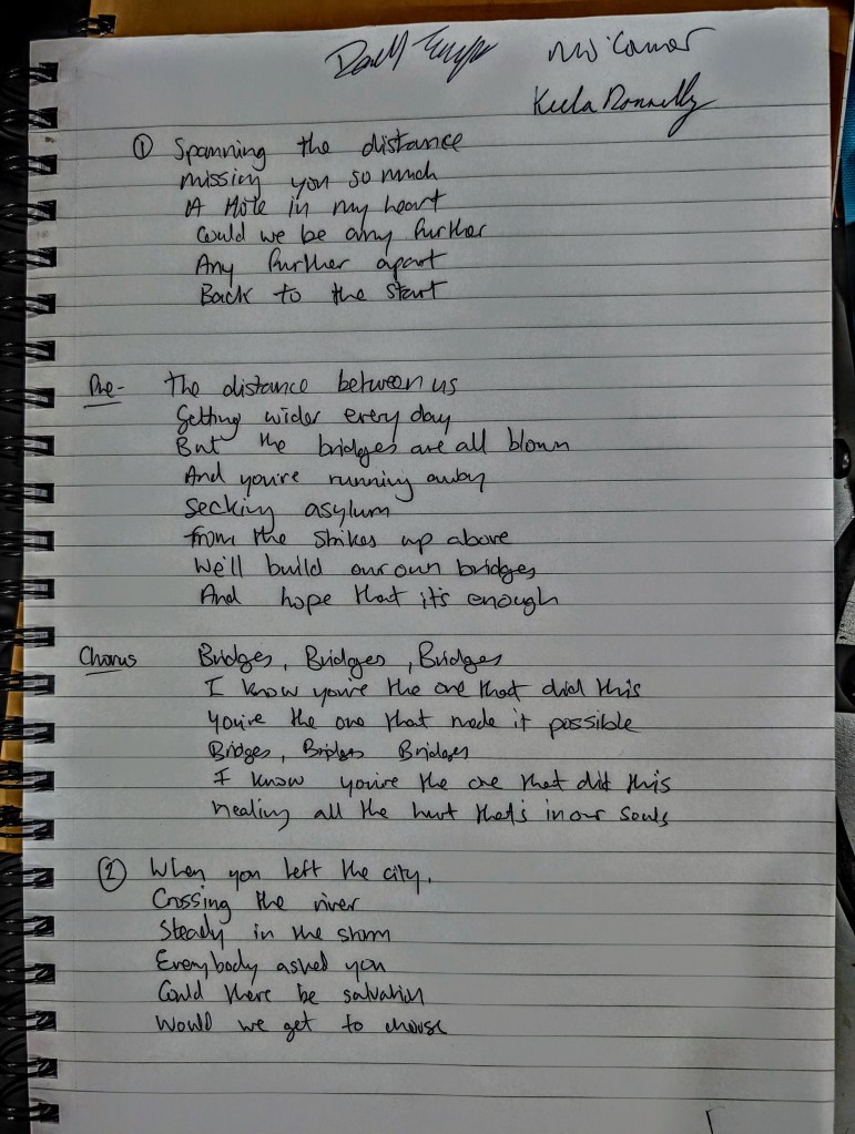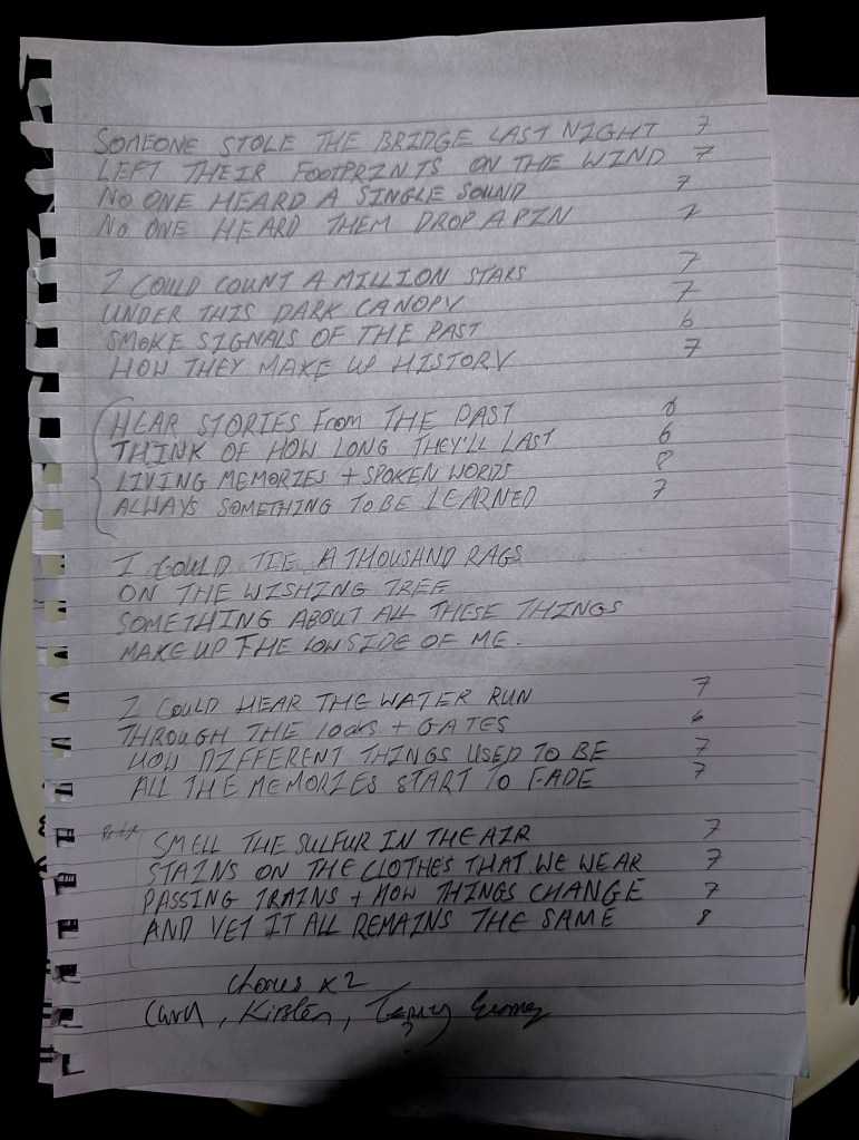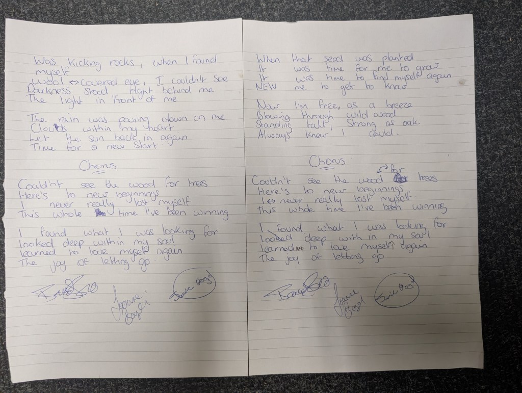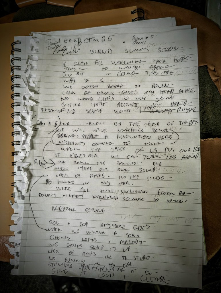 Each Session has a chosen theme to write about and the random way in which we mix the Writers into their groups results in an electic mix of influences and songs.